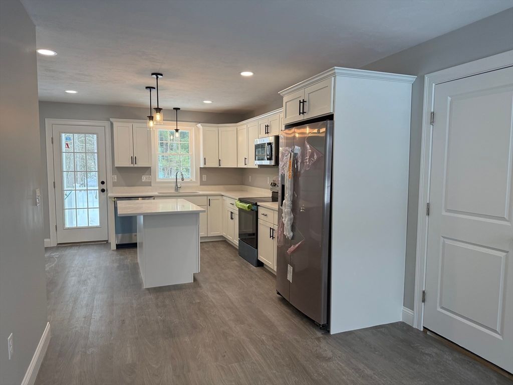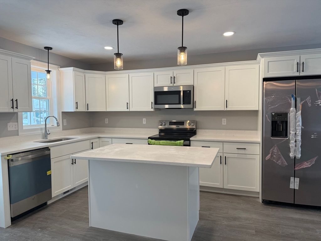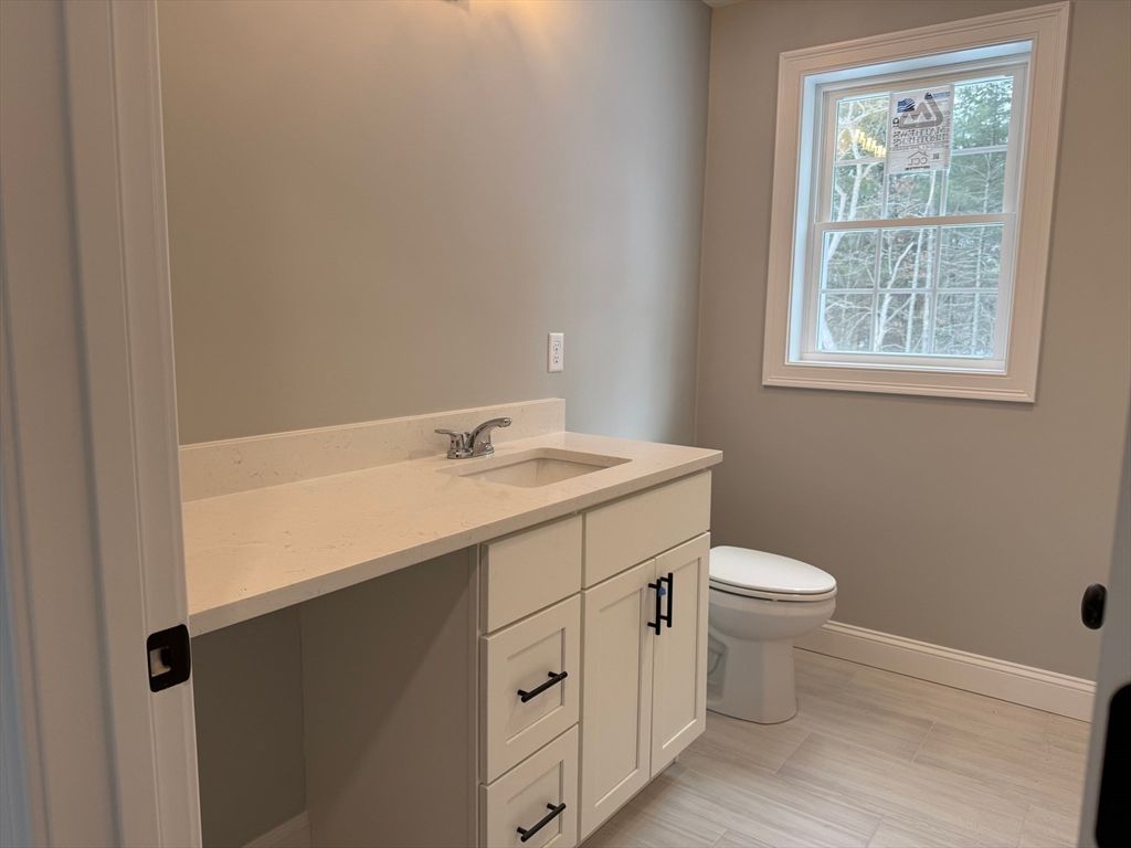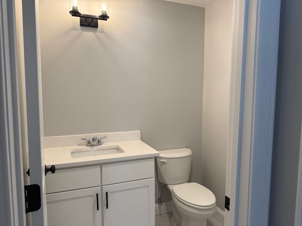 Exciting Opportunity to Own a Brand-New (4-Bedroom) Condominium offering 2,280 square feet of thoughtfully designed living space. You will look forward to coming home to this beautifully finished condominium complex. The first floor features a spacious primary bedroom with a private en-suite bath, along with a stunning Kitchen showcasing white cabinetry, Modern black hardware, Stainless steel appliances, and a large island with Quartz Countertops. Ample cabinetry storage provides great functionality. Door off the kitchen leads to a balcony overlooking manicured lawns, ideal for relaxing or entertaining. A convenient half bath completes the main level. Upstairs, you will find three generously sized bedrooms and a full hallway bath, offering flexible space for family, guests, or a home office. Additional highlights include central air conditioning and efficient, low-maintenance living. Ideally located close to Commuter Rail, Highway Access, Boston, Cape Cod.