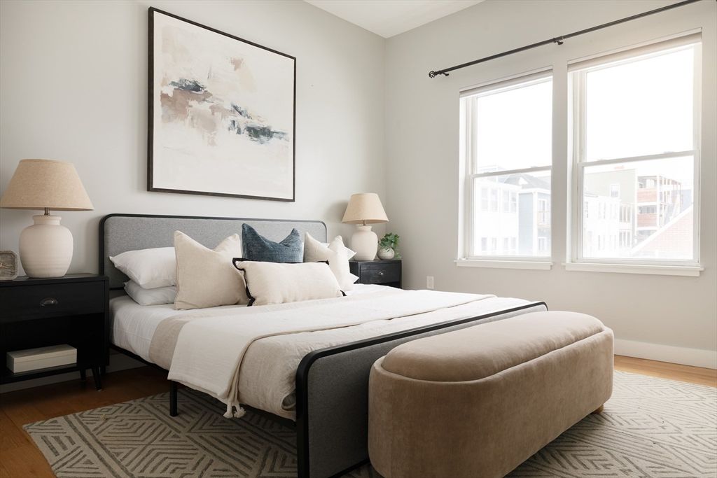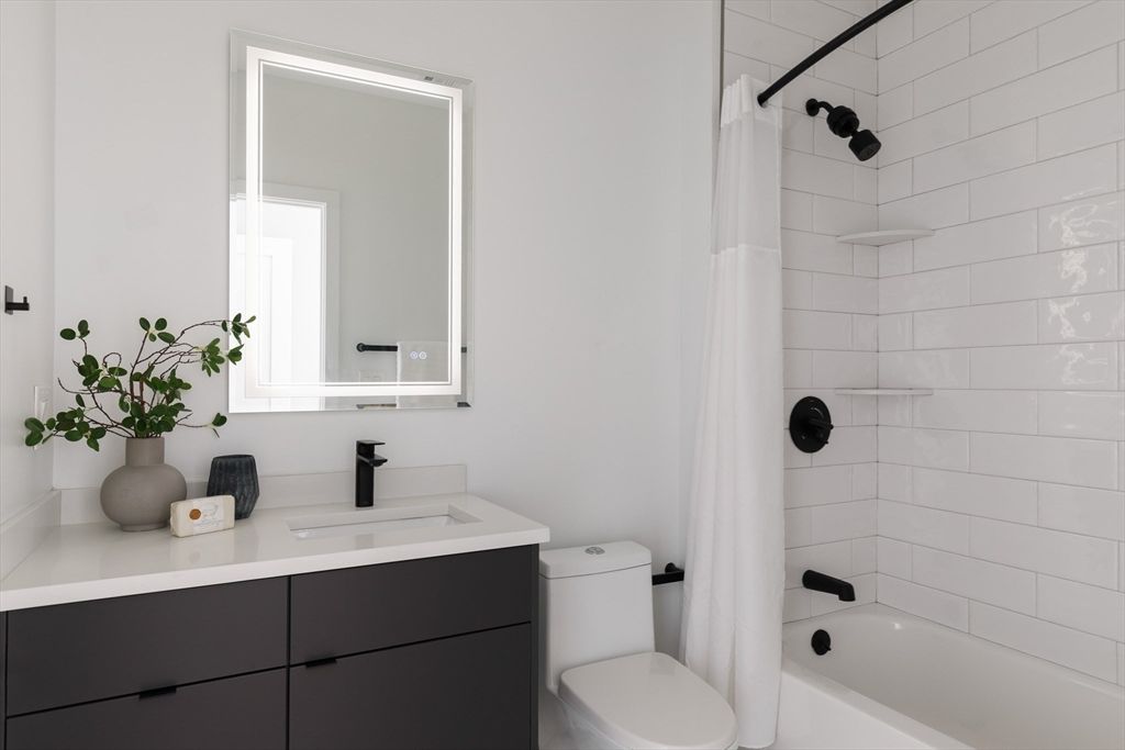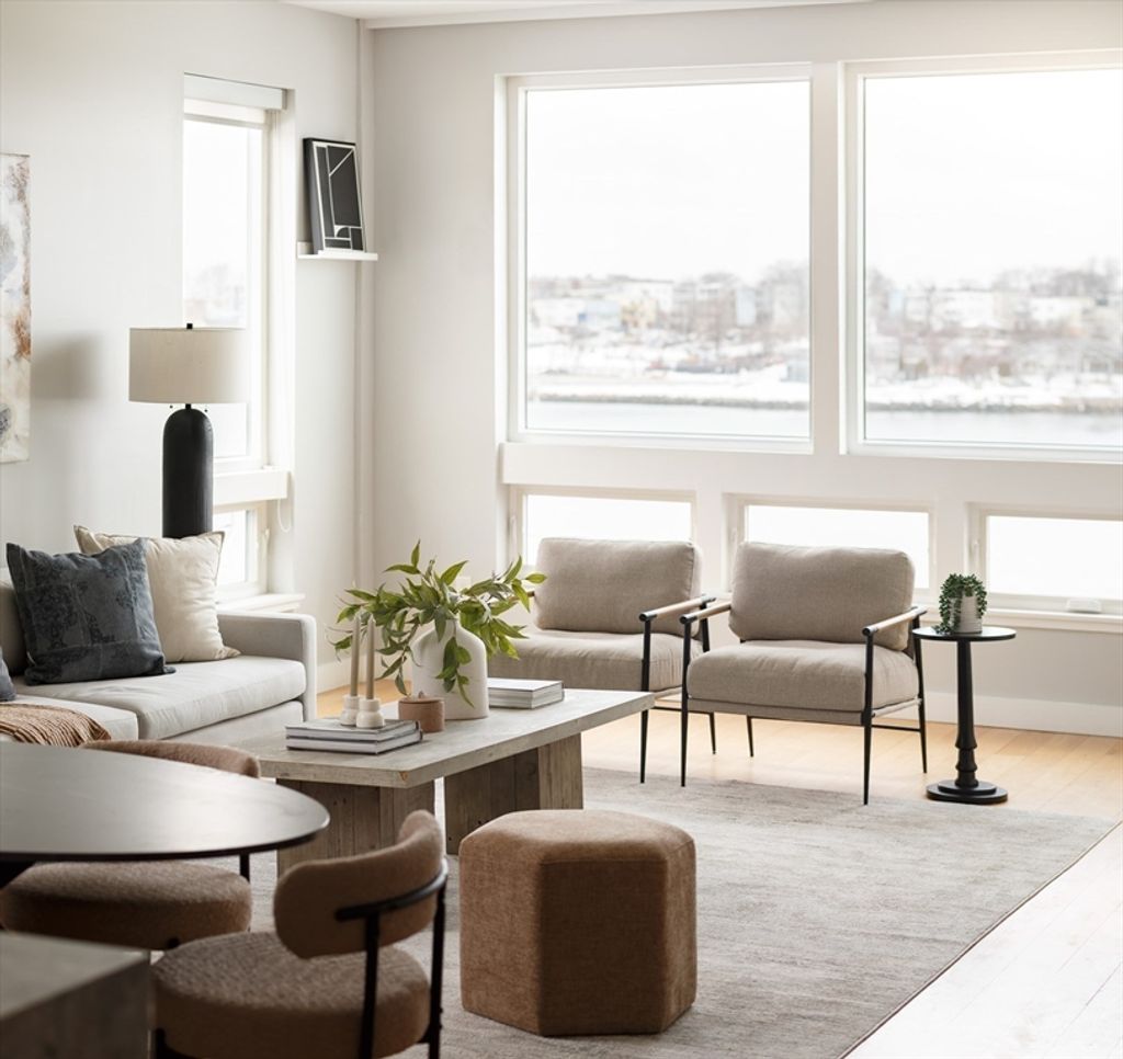 Located at the base of East Boston’s highly desirable Eagle Hill neighborhood, this stunning waterfront condo offers a rare combination of modern design and unobstructed water views, an exceptional find at this price point. Built in 2021 and still in immaculate condition, this 2-bed, 2.5-bath home features soaring 10'+ ceilings and massive floor-to-ceiling windows that frame dramatic views of the water and the Tobin Bridge beyond. The open-concept layout is perfect for everyday living and entertaining, with a sleek kitchen featuring high-end stainless steel appliances and striking countertops that flow into a spacious dining and living area. Both bedrooms are generously sized with ample closet space and en suite bathrooms, including a primary suite with double vanity and walk-in shower. A stylish half bath offers added convenience for guests. Additional highlights include one garage parking spot and a location that puts you close to the best of East Boston with easy access to downtown.