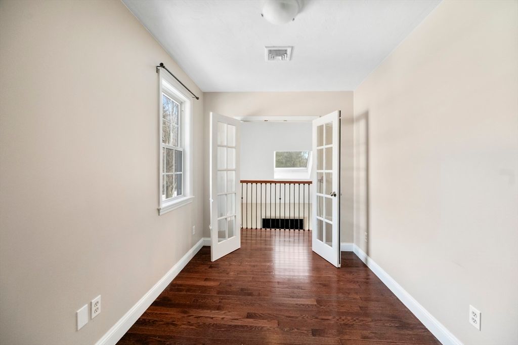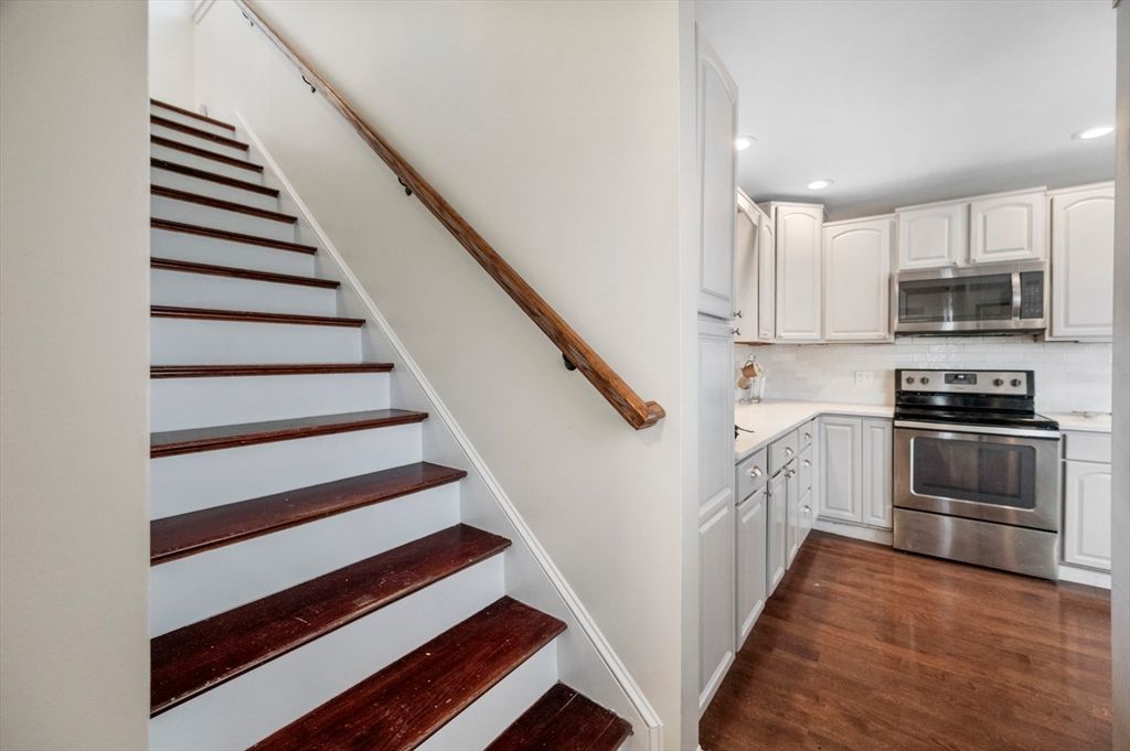Welcome to this beautiful 3-bedroom, 2.5-bathroom contemporary-style home, built in 2006 and designed for modern living. Spanning approximately 1,871 square feet, the interior boasts a seamless open floor plan highlighted by gleaming hardwood floors and soaring cathedral ceilings in the living room. Cozy up by the fireplace or enjoy the view from the unique second-floor balcony overlooking the main living area.The kitchen and dining areas flow effortlessly, leading through new sliding door with built in privacy blinds to a private deck—perfect for outdoor entertaining. Upstairs, the spacious primary suite serves as a true retreat, featuring a master bathroom luxurious Jacuzzi tub. Additional features include an attached garage, central cooling, and a mix of hardwood and tile flooring throughout. Situated on a manageable 0.17-acre lot, this home offers the perfect blend of style and convenience in a desirable Marlborough neighborhood.