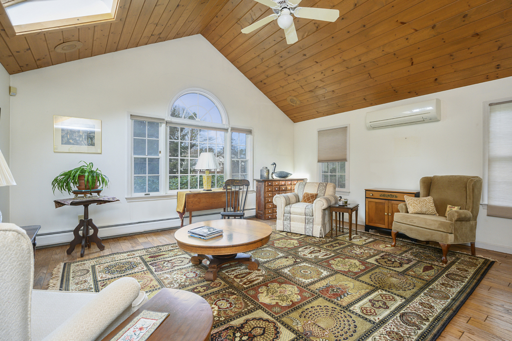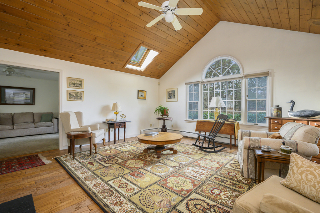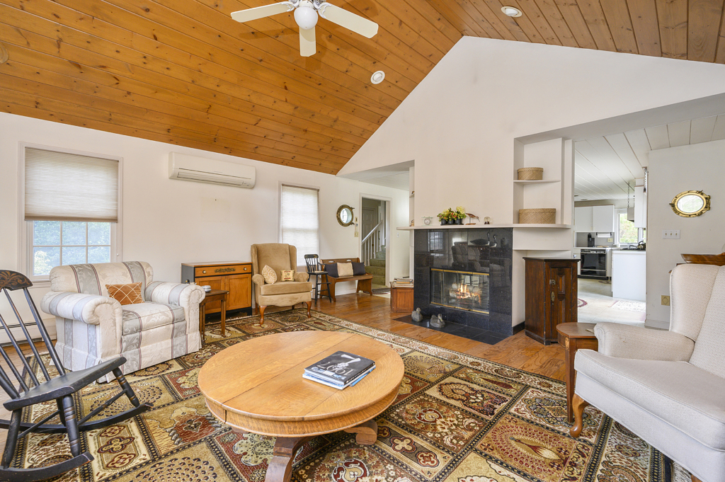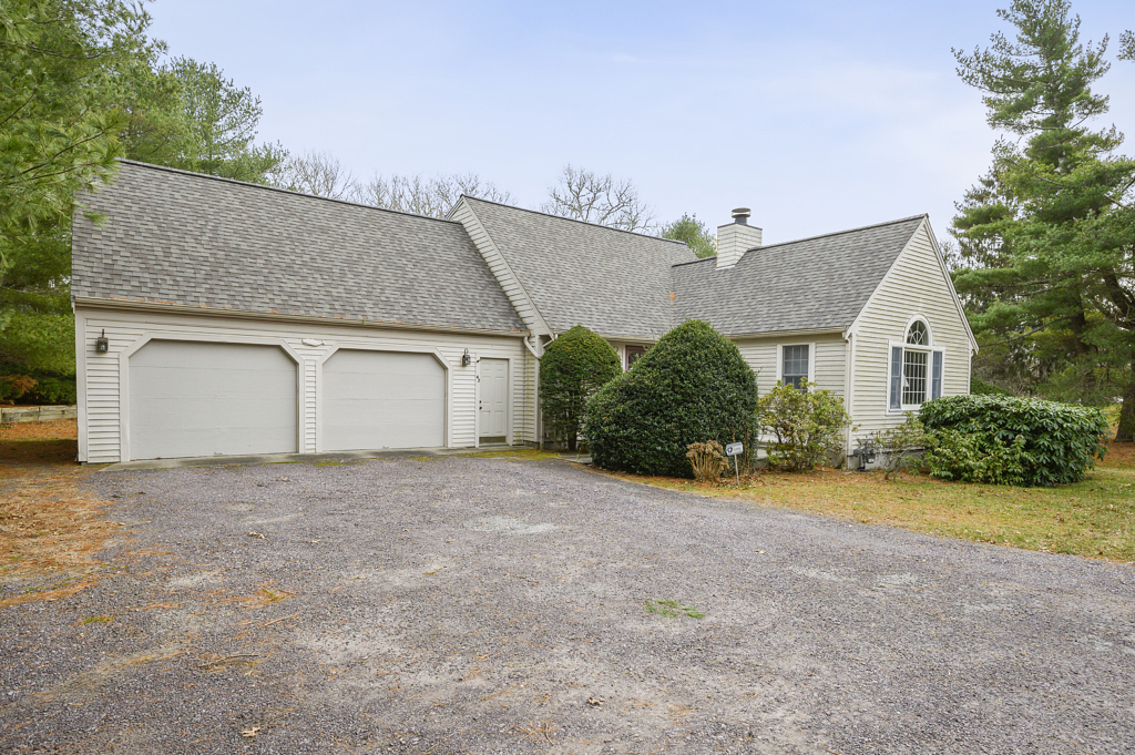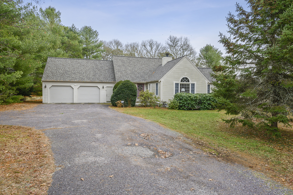 Serenely tucked away in peaceful woods this 3 bed 3 bath 2000+ sqft home is a perfect invitation to peaceful living in Cape Cod, ideally located less than a ten-minute walk to fun and food on Main Street Osterville, and less than a 5-minute drive to the beach. Step into this home and into the stunning Living room with warm hardwood floors reflected in the soaring ceilings punctuated by gorgeous skylights and brimming with natural light. The elegant double-sided fireplace guides one into the Dining room and kitchen with a beautiful brick face to the now cozy home hearth. The kitchen is large and features an indoor grill with a massive hood and extractor fan. Easy access to the elevated deck with expansive views of the open yard and wooded backlot is the perfect place to entertain. Space abounds with three bedrooms and three full baths, and if storage is what you need the large basement and two-car garage will not disappoint. Accept this home’s warm invitation, come view today!